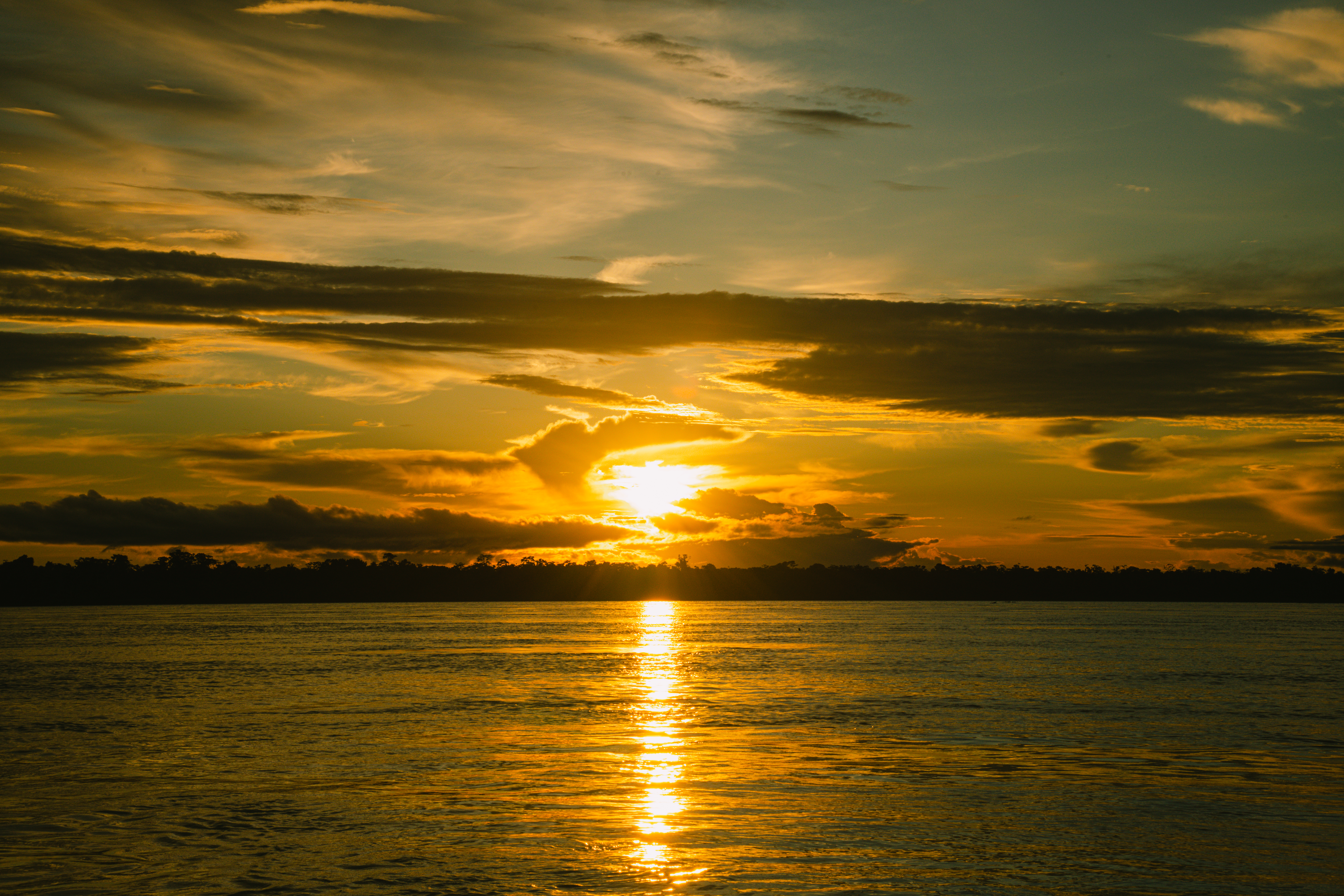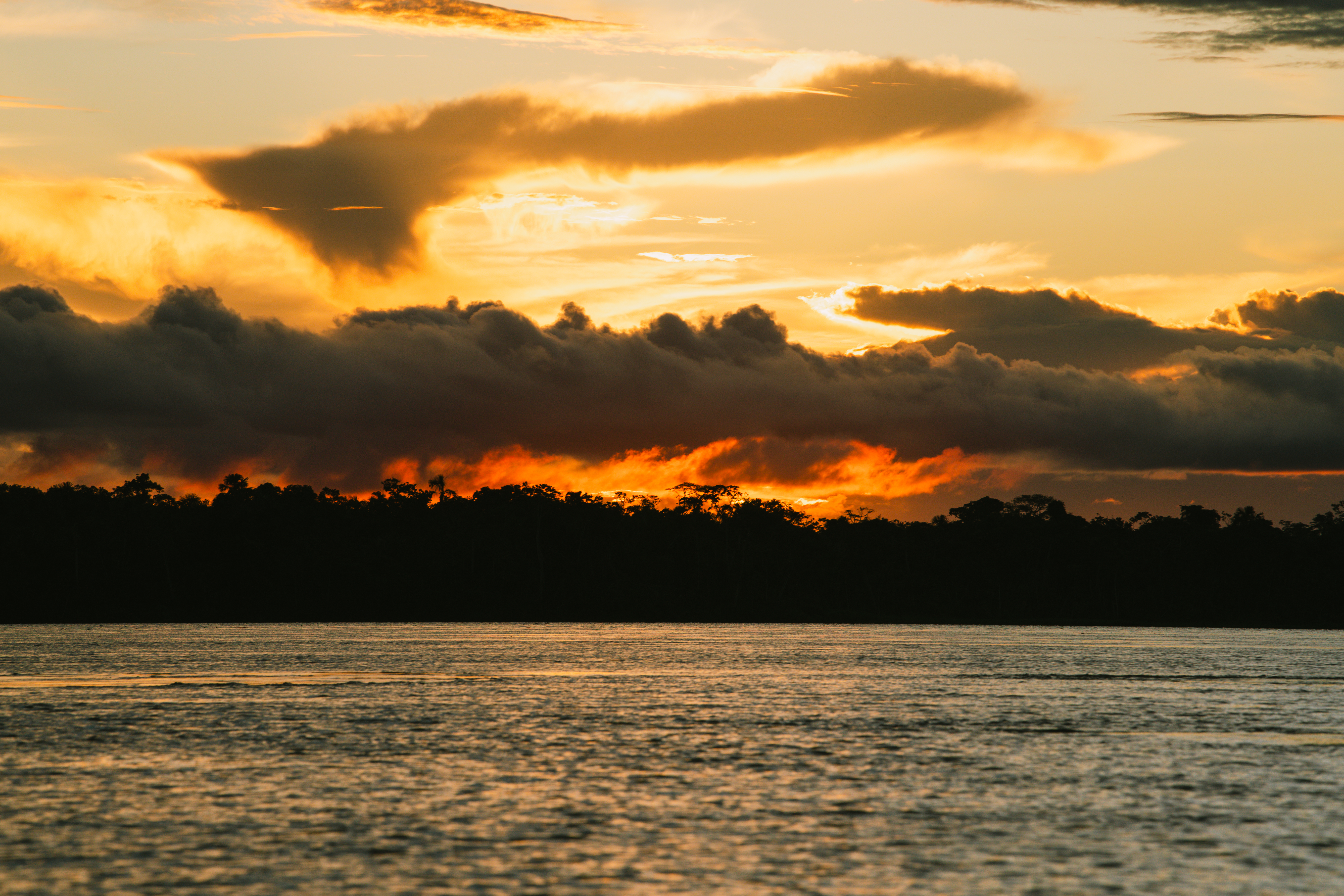 Nous profitons de cette belle dernière soirée pour admirer un magnifique coucher de soleil sur le fleuve Amazone. Un spectacle que nous n’oublierons pas. Les couchers de soleil en Amazonie sont spectaculaires.