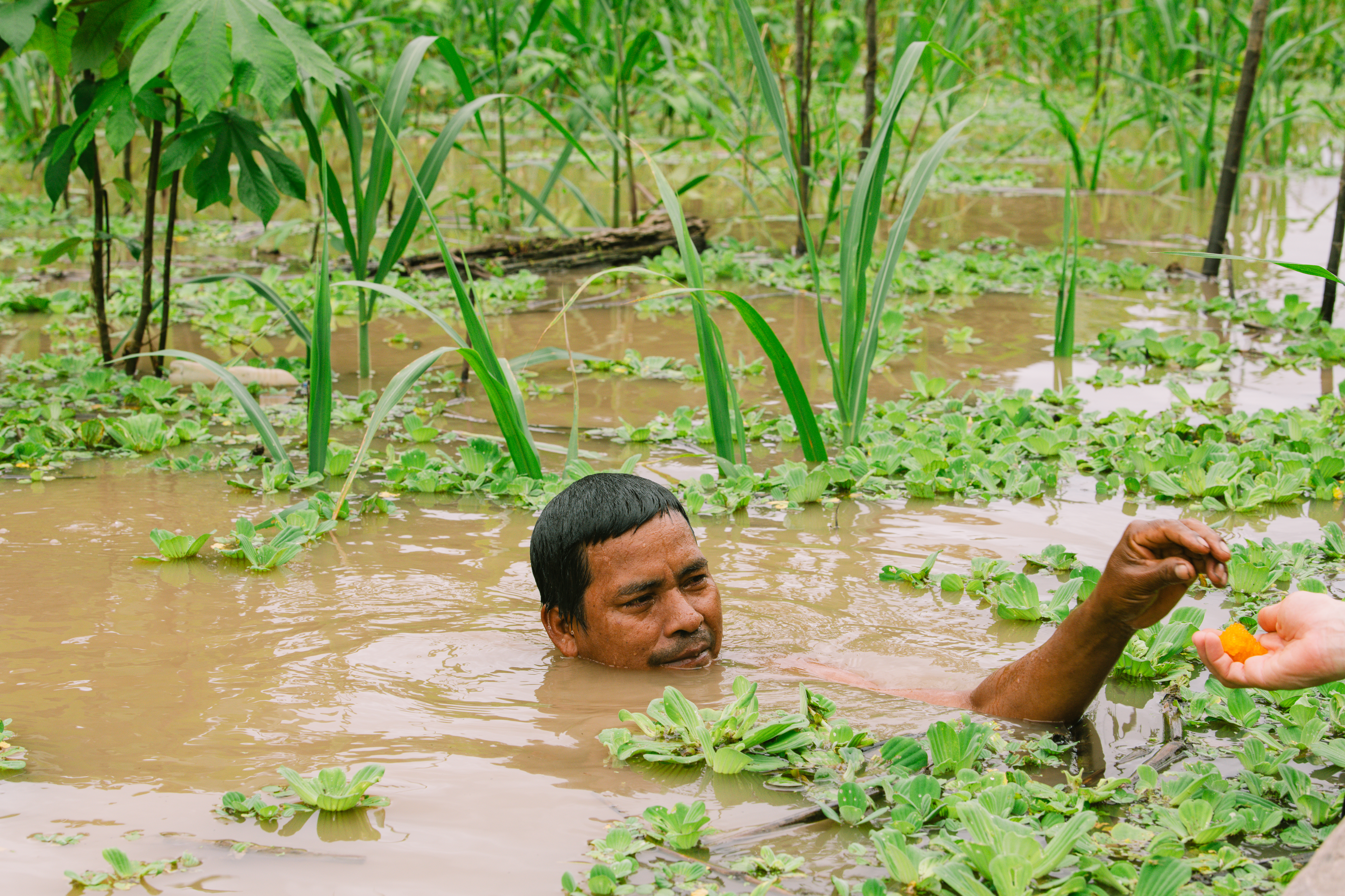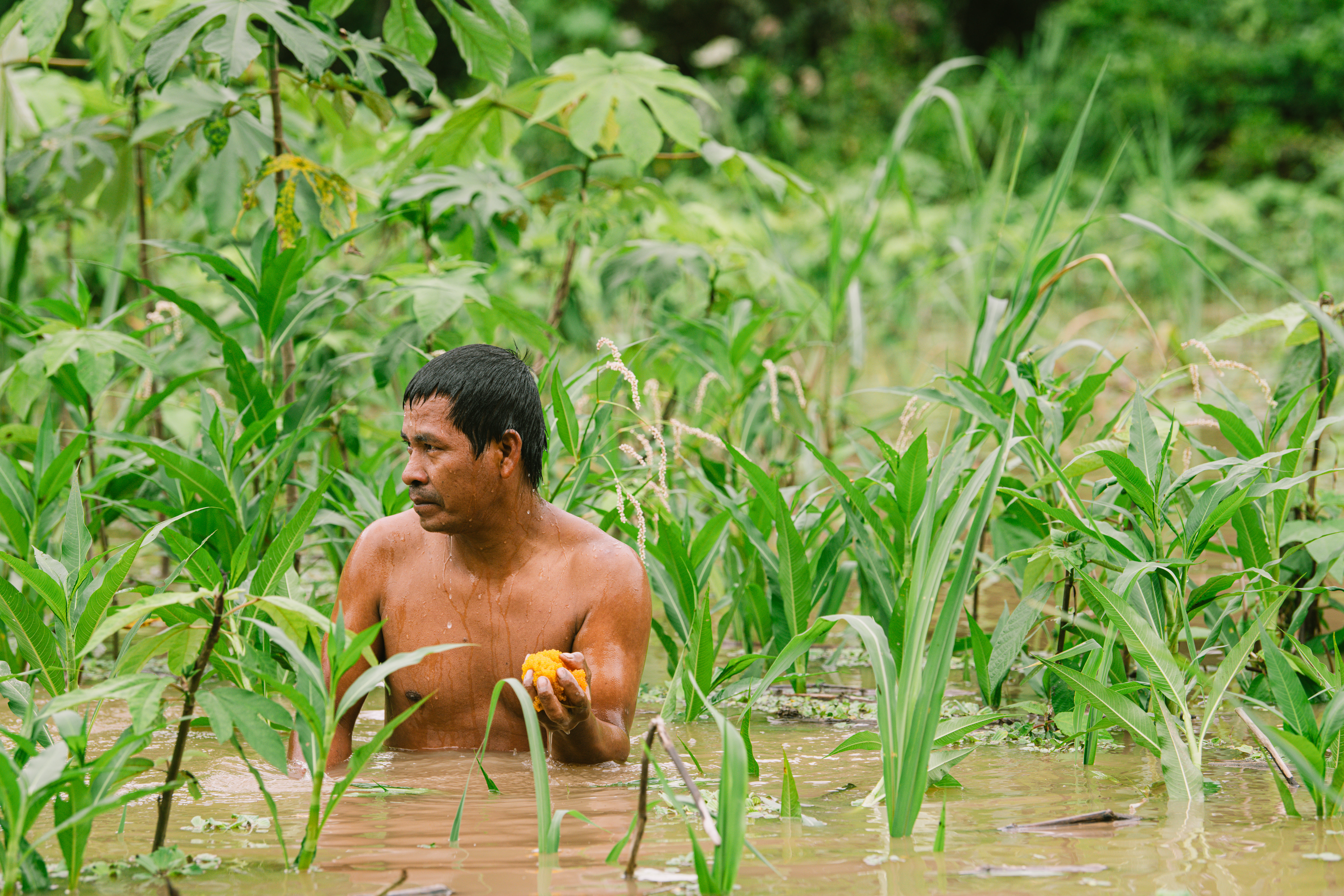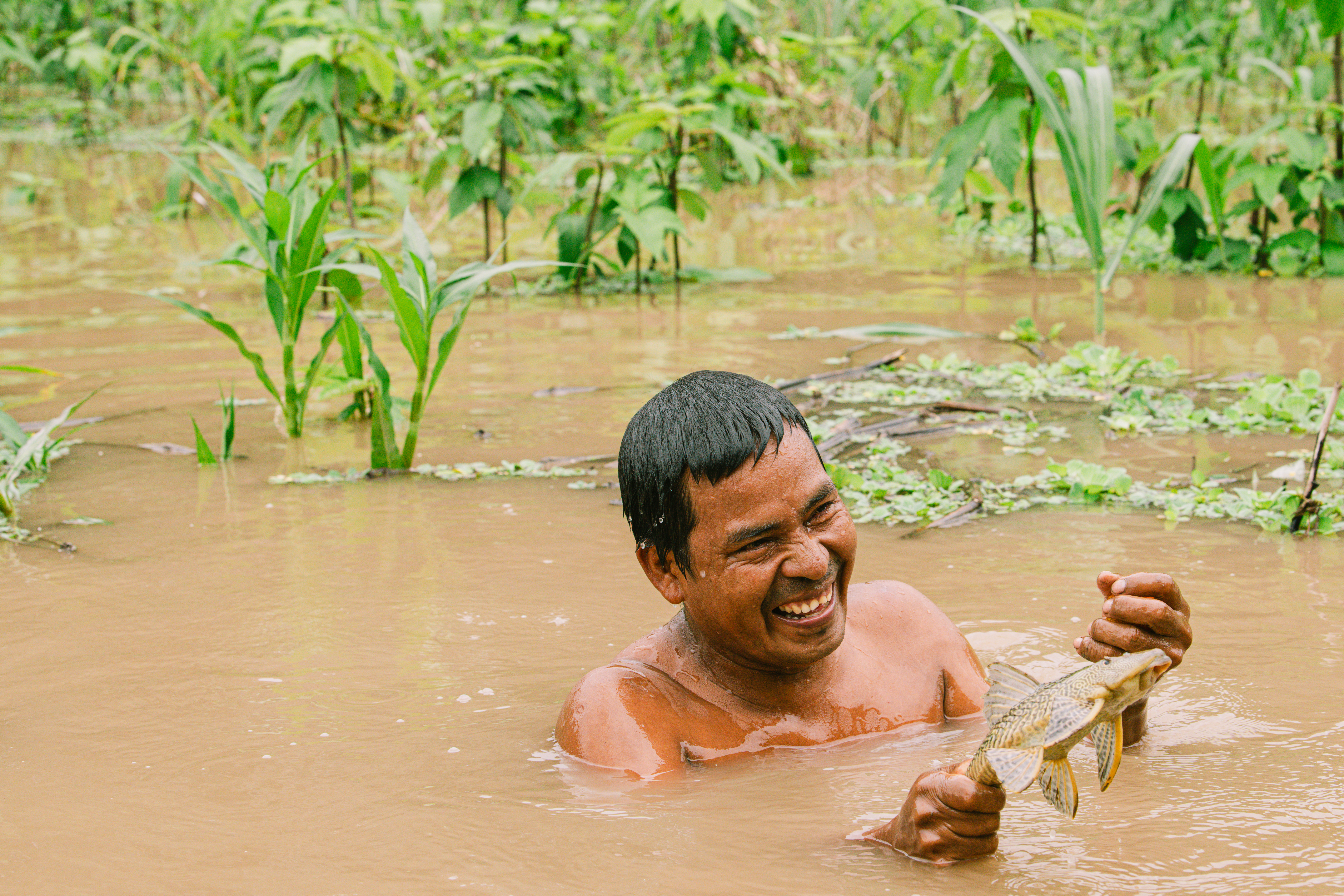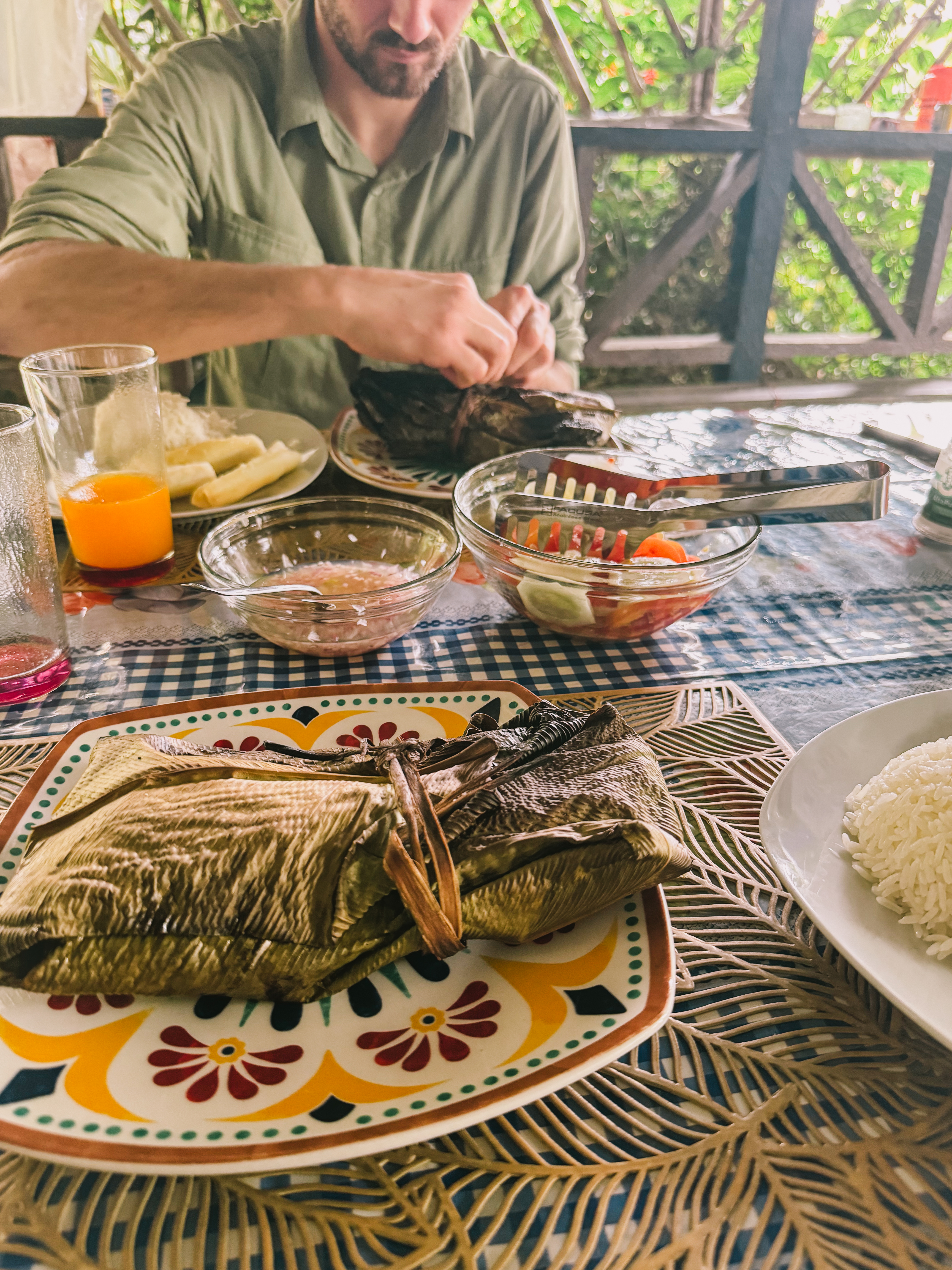 Notre hôte nous a confié à l’un des meilleurs pêcheurs de sa communauté qui nous a emmenés sur de petits rios pour pratiquer la pêche à la ligne (bon on a pêché que des petits poissons que nous avons relâchés) et nous a montré son talent pour récolter les oeufs de lump au fond du rio.