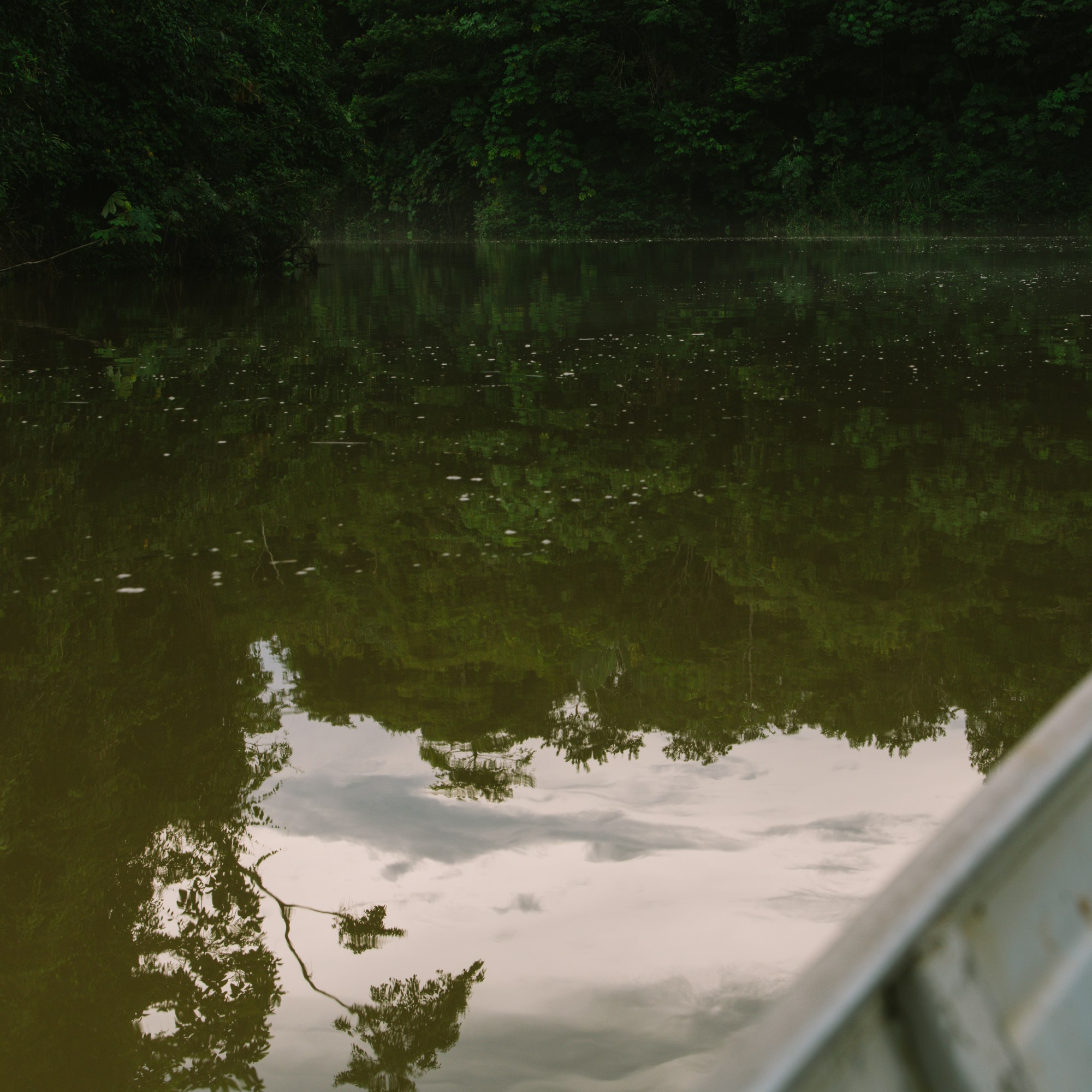 Notre hôte nous a emmenés observer les dauphins roses du côté péruvien, au lac Caballococha. Contrairement au lac Tarapoto, souvent mentionné dans les guides touristiques, celui-ci abriterait selon lui une population plus abondante de dauphins roses. Nous n’avons pas été déçus : seuls sur le lac et malgré la pluie, le spectacle fut incroyable. Bien que nous aurions pu nous baigner, le temps maussade nous en a dissuadés. Notre hôte nous a toutefois assuré que si nous étions entrés dans l’eau, les dauphins, curieux, se seraient approchés de nous. On vous laisse tester l’expérience 😉